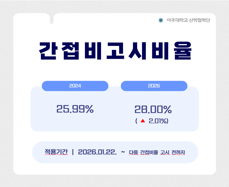 [공지] 국가연구개발사업 간접비고시비율 안내(고시: 2026.01.22.)